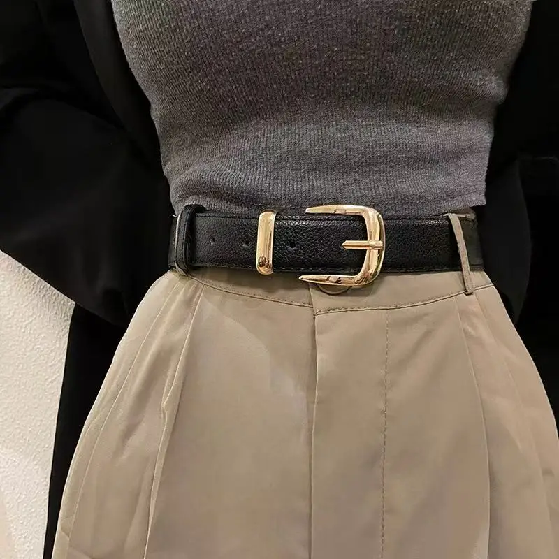 Women's Belt Trend Gold Buckle Belt Fashion Casual Versatile Thin Belt Soft PU Leather Belt Jeans Be...