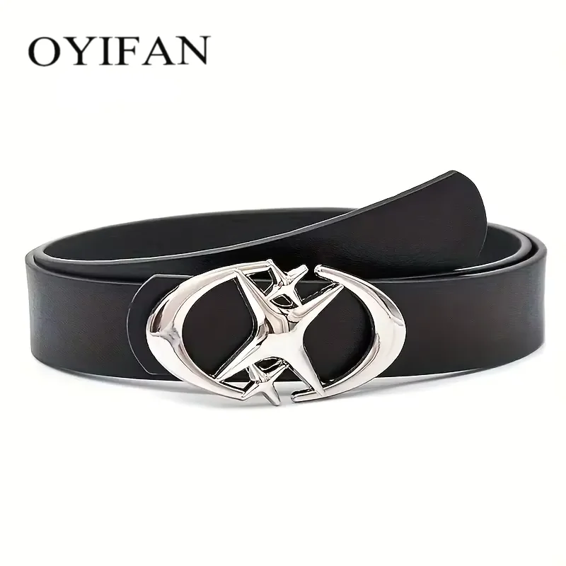 1pcs Men's Belt Punk Star Buckle Belt Design Cross Metal Vintage Go...