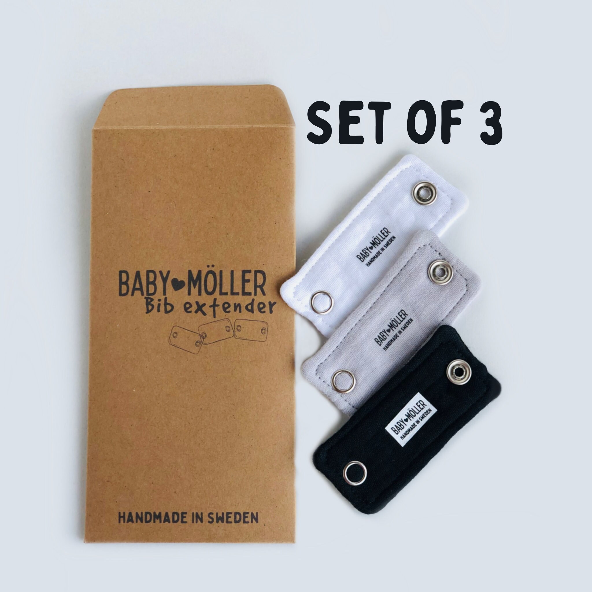 3 pieces of Bib Extenders for your small bibs. Bib Extension with Metal, Plastic Snap, or Hook and L...
