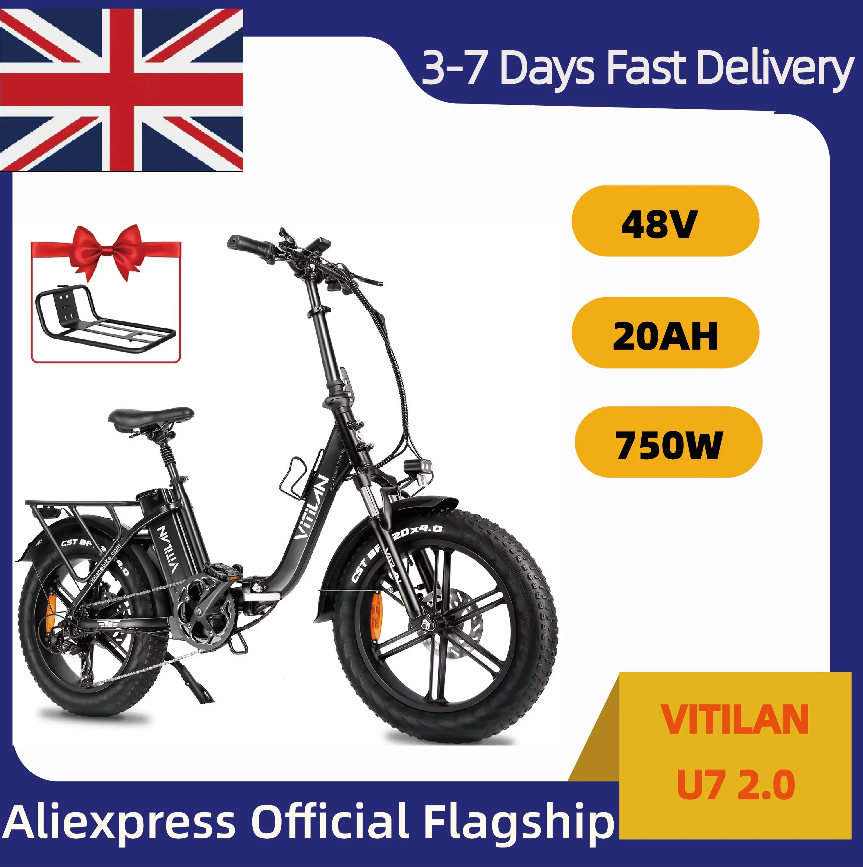 Vitilan-U7 2.0 Electric Bike for Adults 750W Folding Mountain Electric Bike 20 Inch Fat Tire 48V20AH...