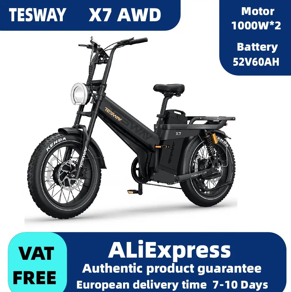 TESWAY X7 AWD Adult Electric Bicycle,1000W*2 city ebike, 52V 60AH E...