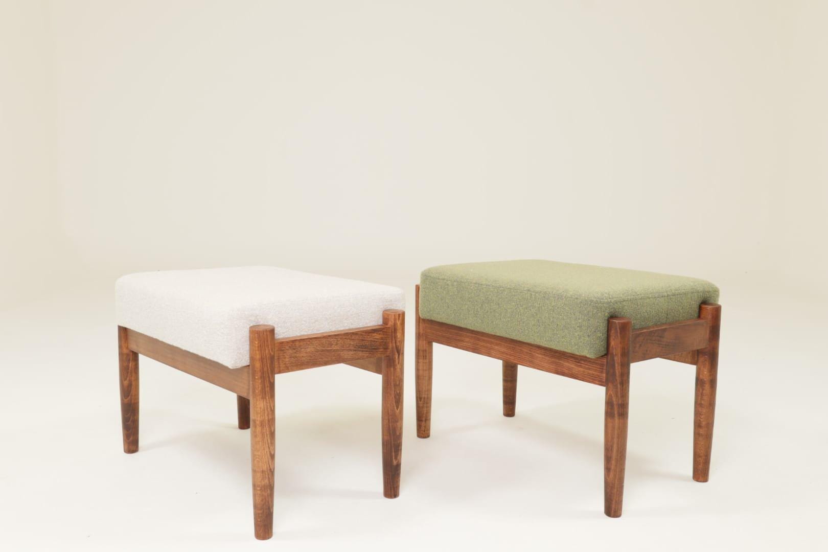 Do kompletu dodaj dwa podnóżki z drewna bukowego, pasujące do zabytkowych foteli. N...