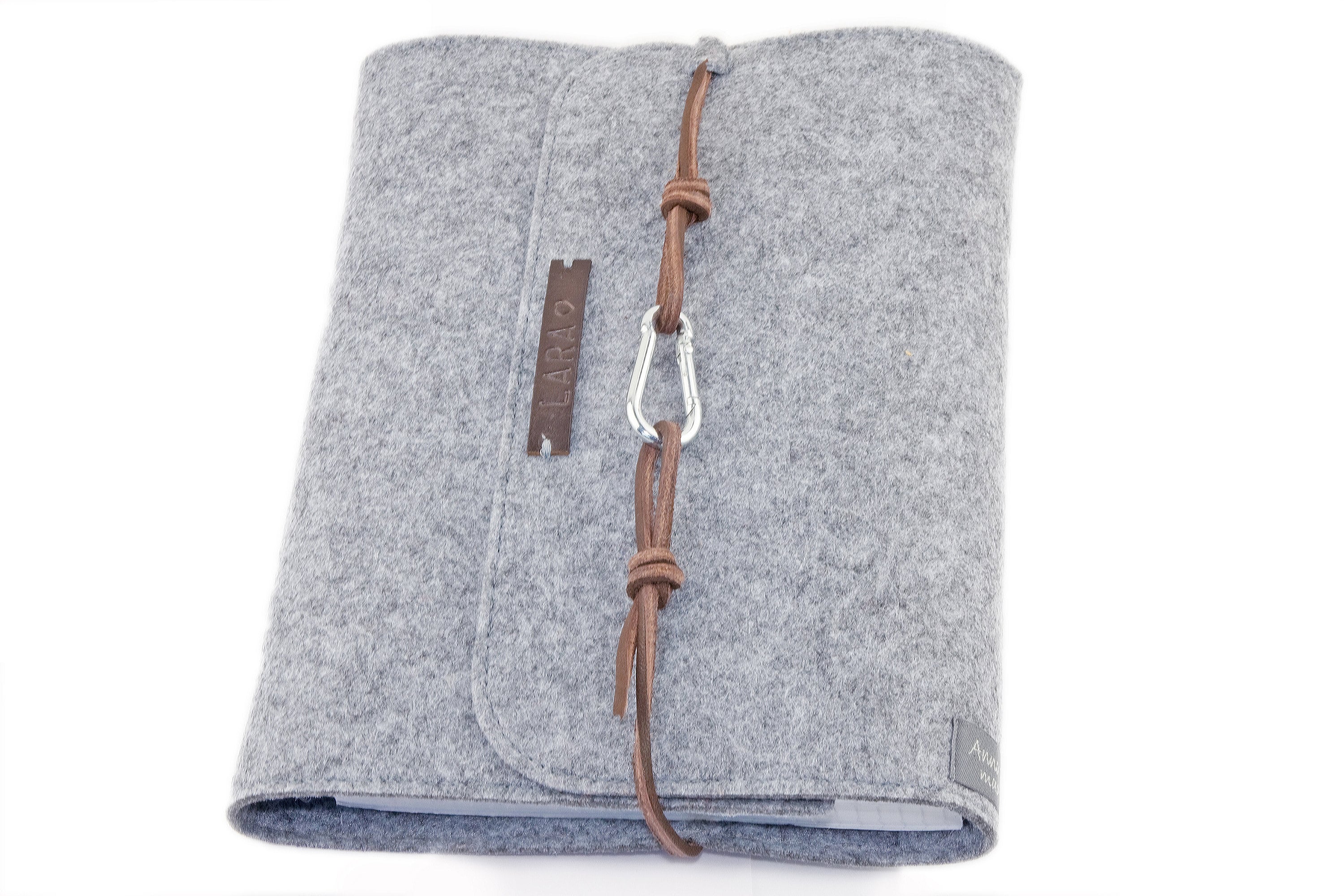 Personalized A4 ring binder, grey felt leather, gift folder, hotel ...