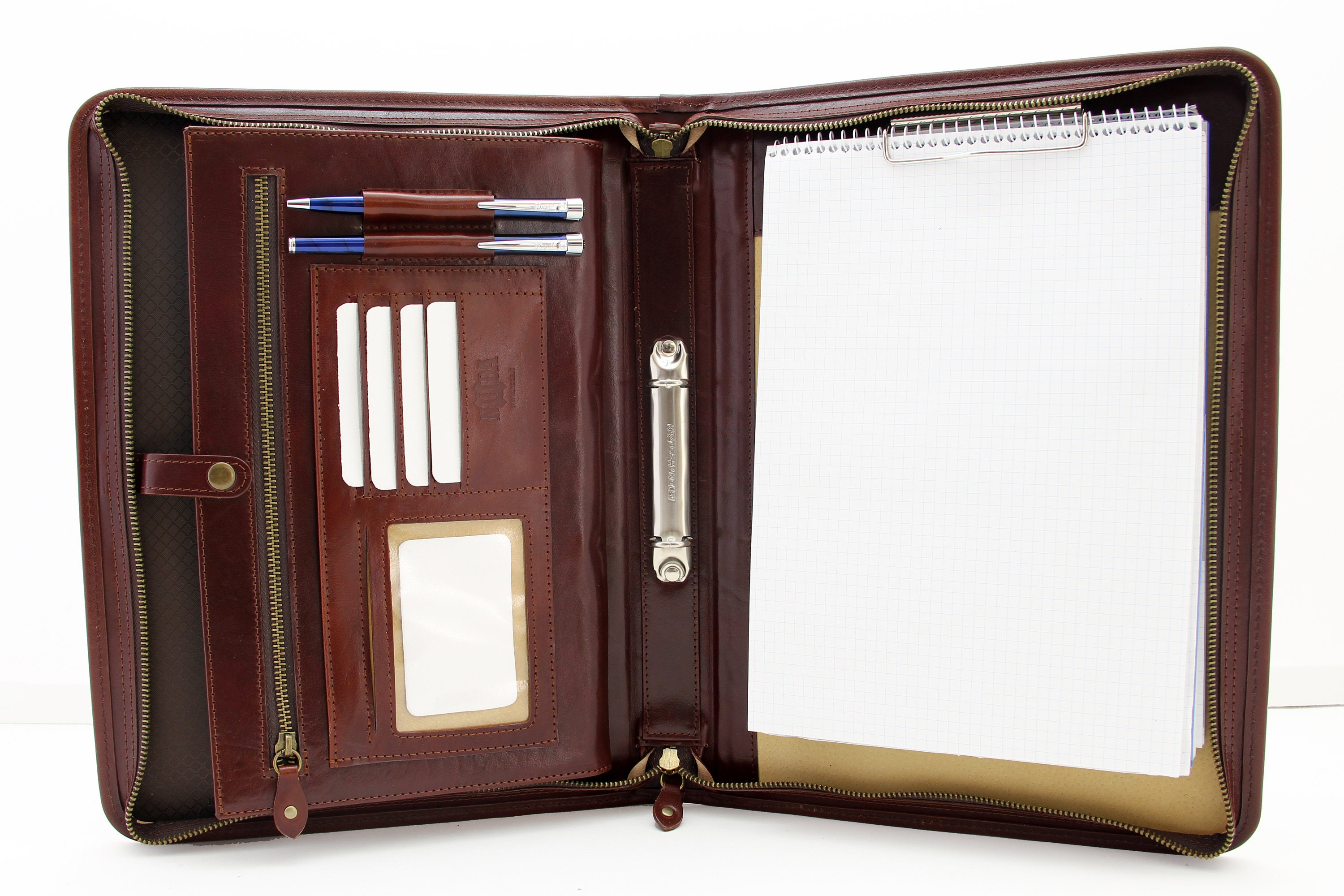 Leather document holder, ring binder 2 rings, laptop and notepad ho...