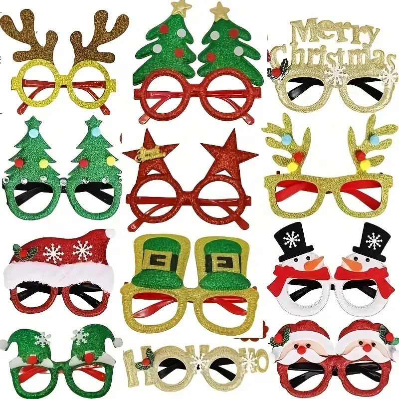 12-piece holiday Christmas glasses set, deer and tree design, classic Santa Claus, holiday celebrati...