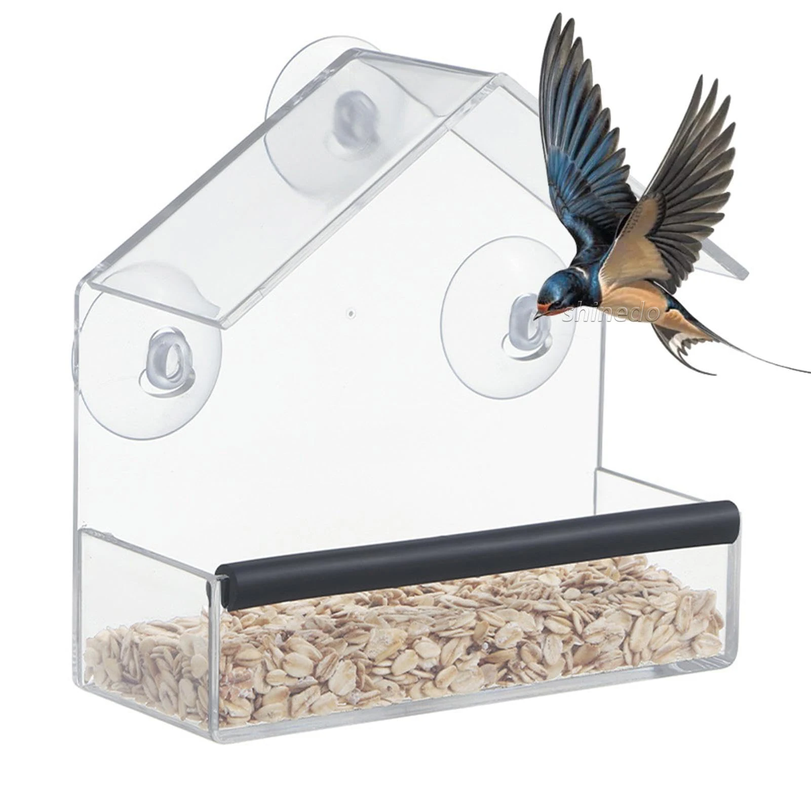 Bird Feeder Acrylic Transparent Suction Cup Window Bird Feeder Tray...