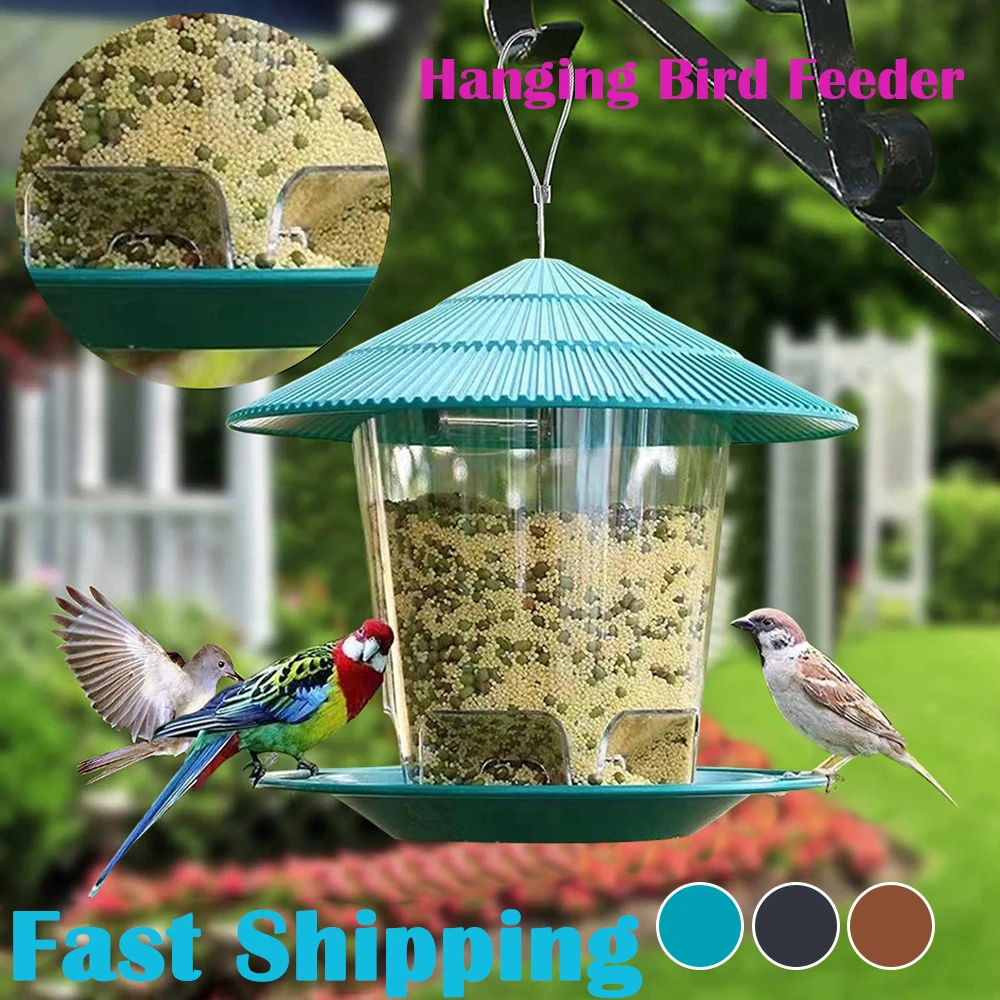 Transparent Roof Shaped Parrot Feeding Station Large Capacity Hangi...
