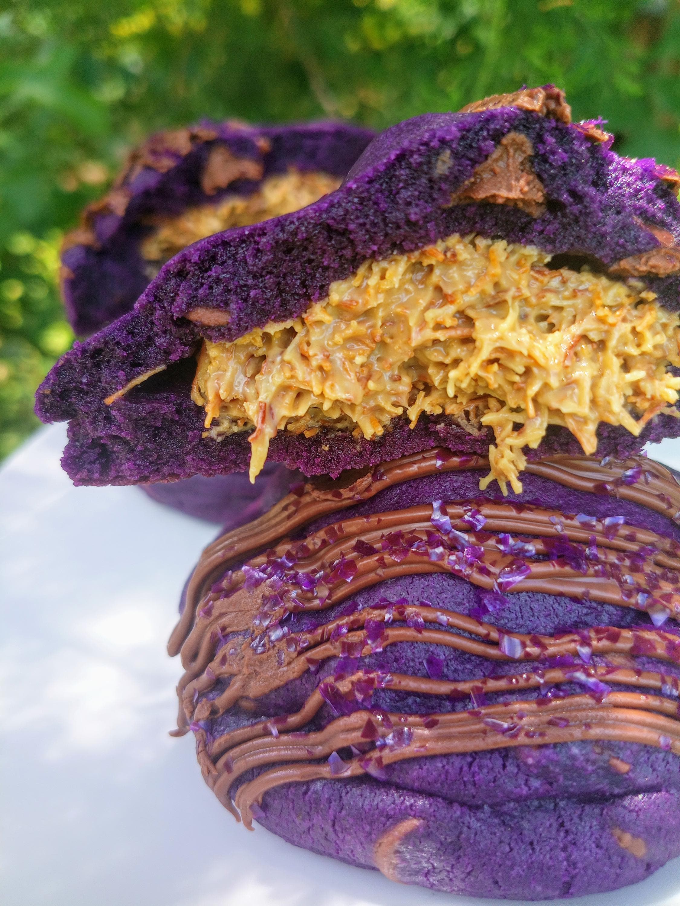 -A thick and soft, Ube flavored Cookie, that's packed with Milk Chocolate Chips! The Cookies are stu...