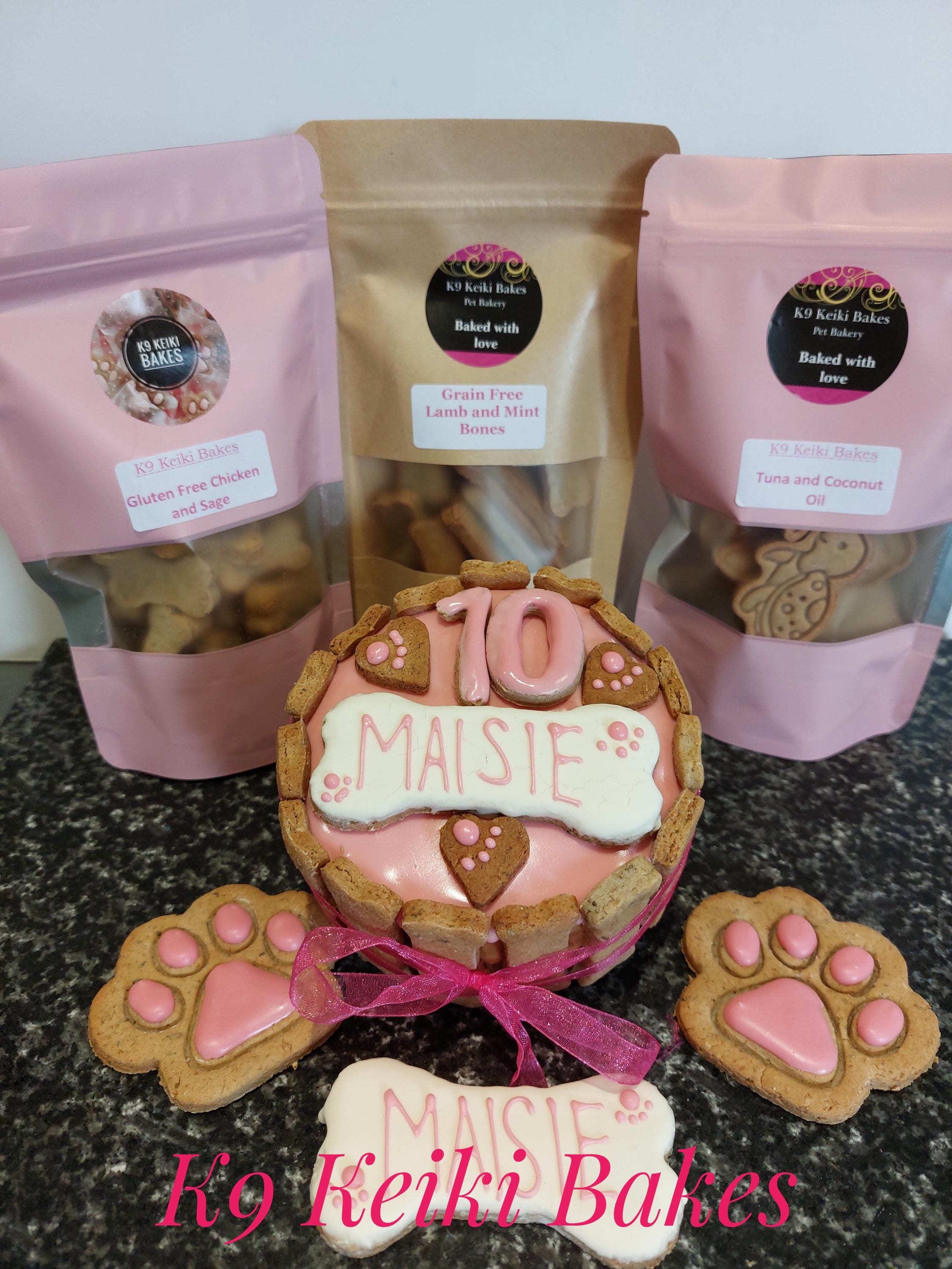 "Healthy woof-day cake, biscuits and cookies for your canine pal. With your 4\" woof-day c...
