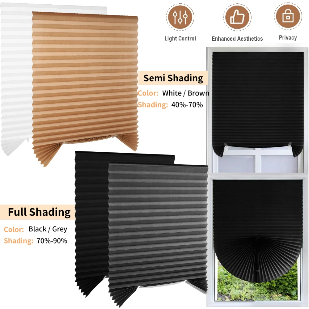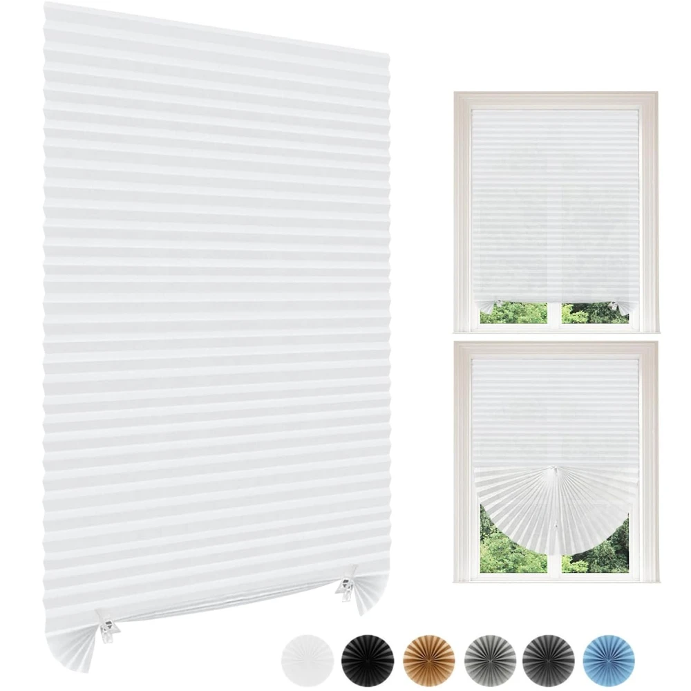 1/2 Pack Pleated Window Blinds Temporary Blackout Paper Shades Cordless Light Filtering Free Cut Siz...