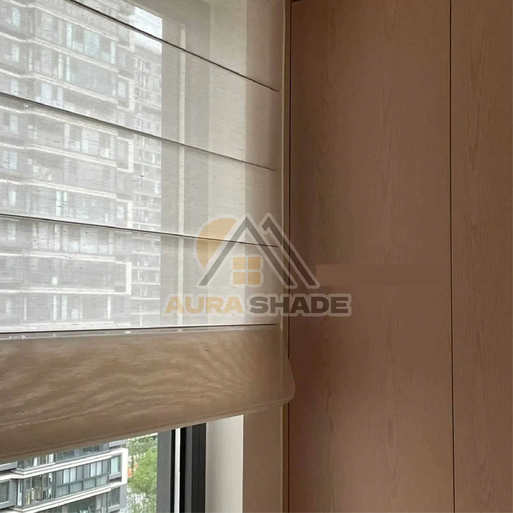 Smart Roman Blinds Fabric Light Filtering Motorized Blinds Roman Sh...