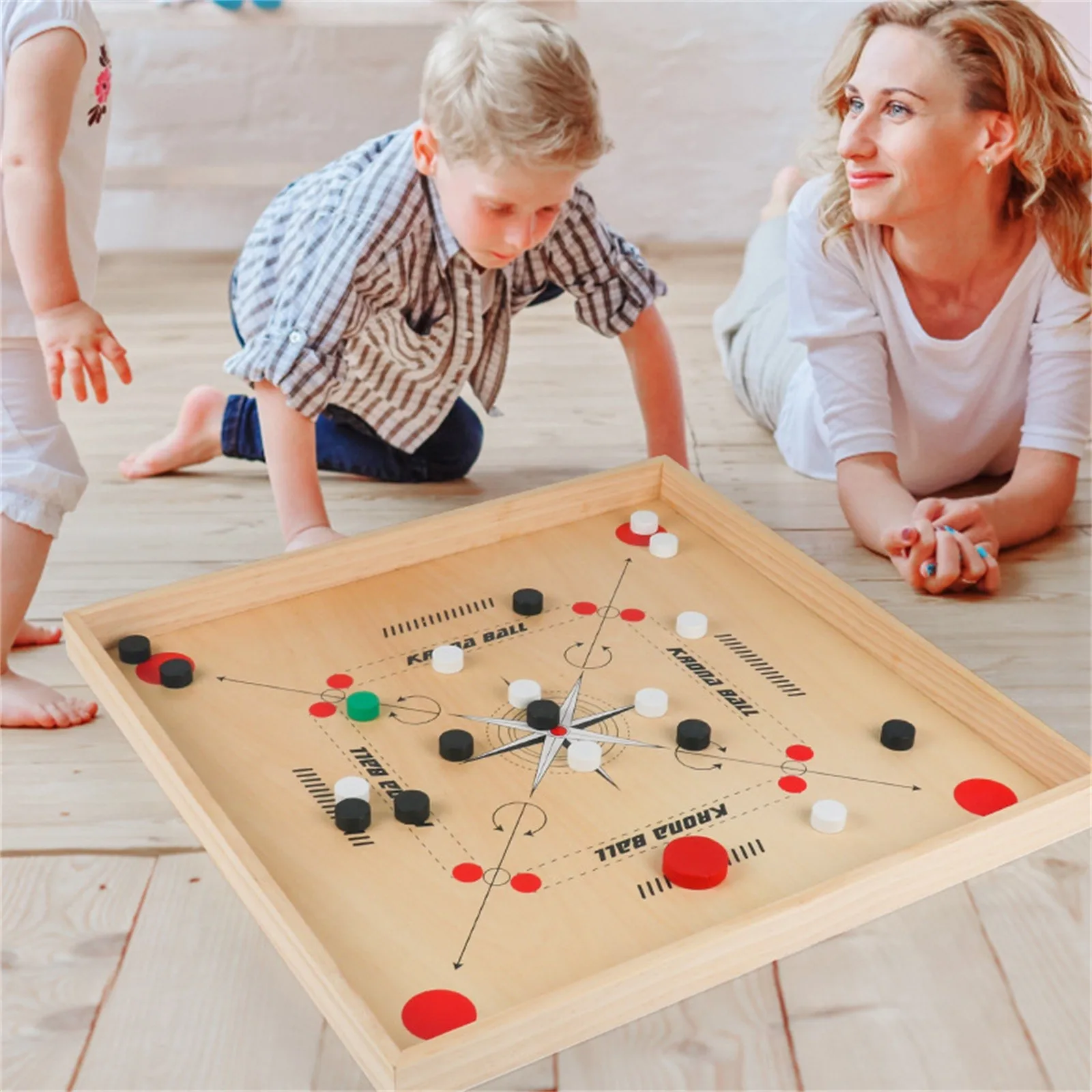 Parent-Child Interactive Toys, Round Wood Board, Carrom Board Game, Desktop Hand Play Chess, Interac...