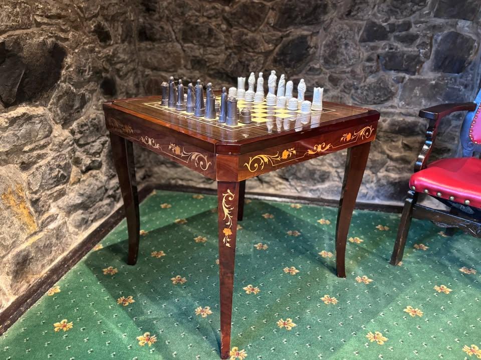 Chess Board Table Wooden Chess Piece Round Chess Table Vintage Home...