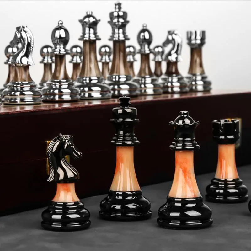 32 PCS Luxury Chess Se,t Big Chess Game, 45CM Folding Wooden Chess Board, Exquisite ABS Plastic Stee...