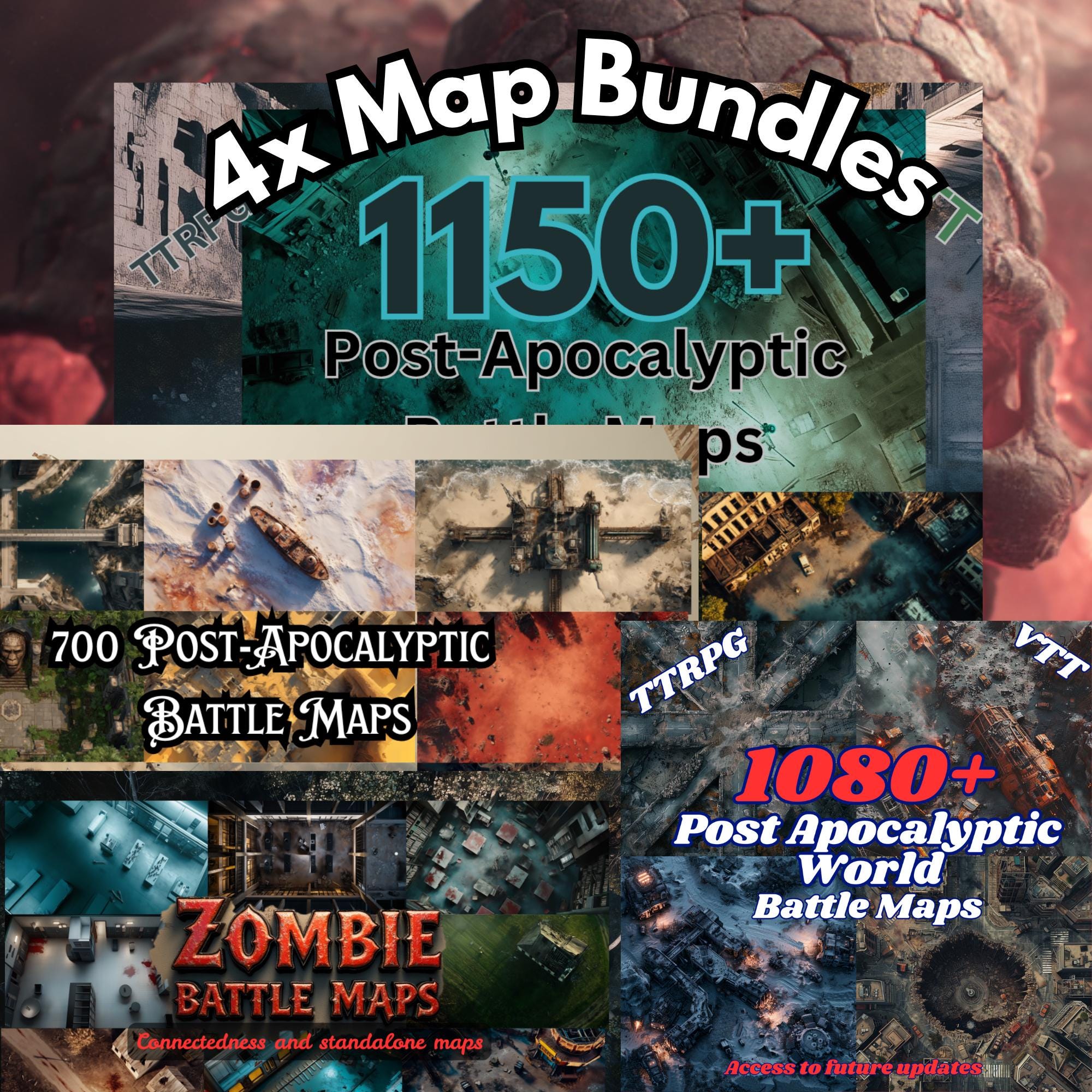 4 Post Apocalyptic Battlemap Bundles, 4 DnD Map Bundles, Post Apoca...