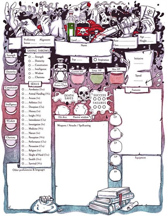 Printable Rogue D&D 5e Character Sheets - Poison Theme (Digital...