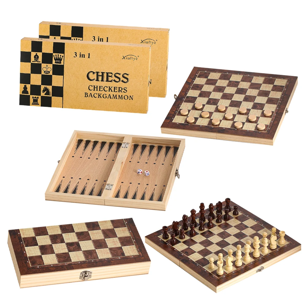 Wooden 3-in-1 Checkers Backgammon and Chess Set Model Suitable for ...
