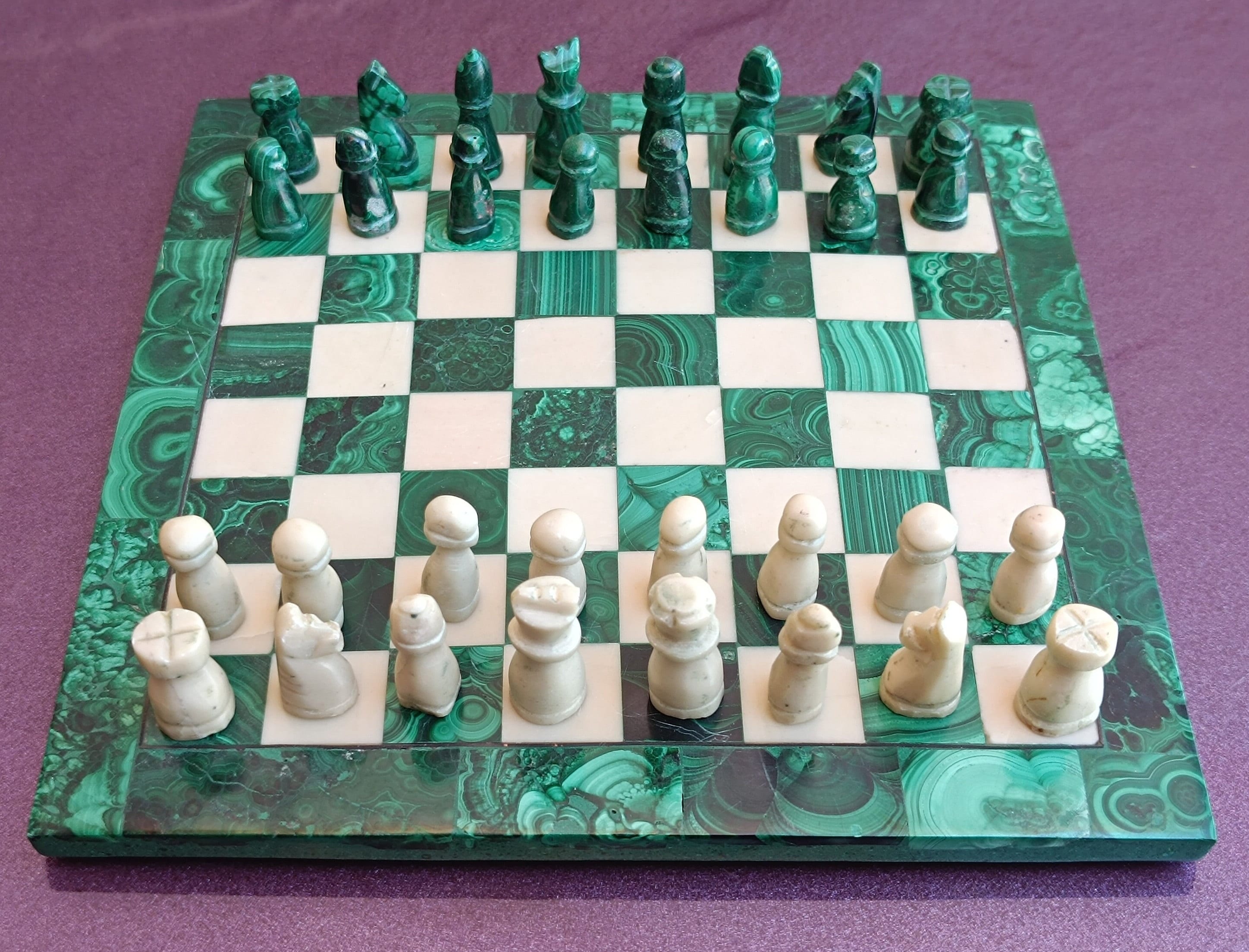 Marble and Malachite Chess Set, Chess Set With Board, Chess Game, Antique Chess, Spanish Chess, Old ...