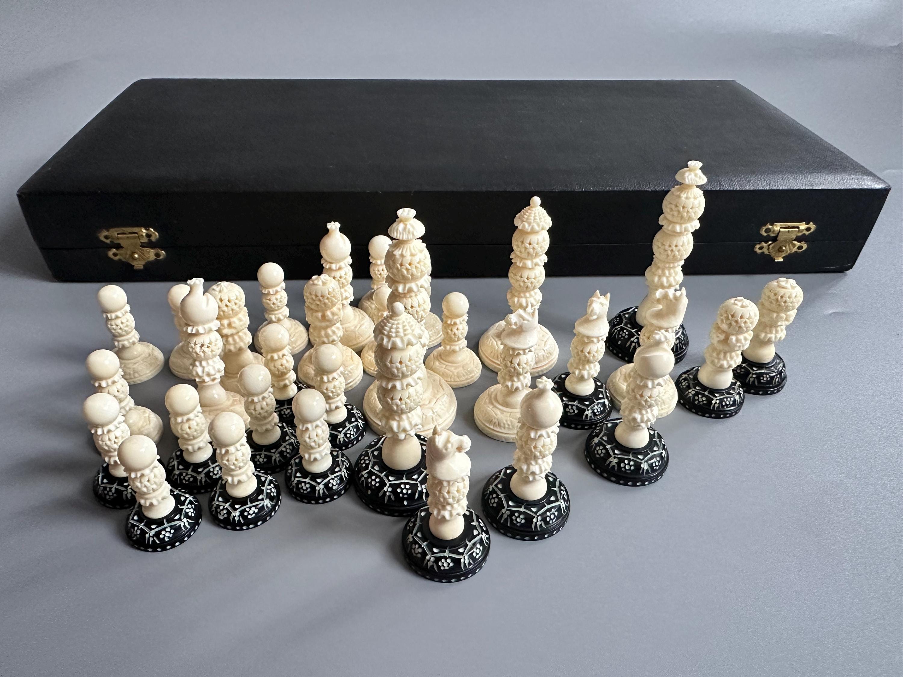 Indian handmade chess set Antique chess near 50s in a special case ...