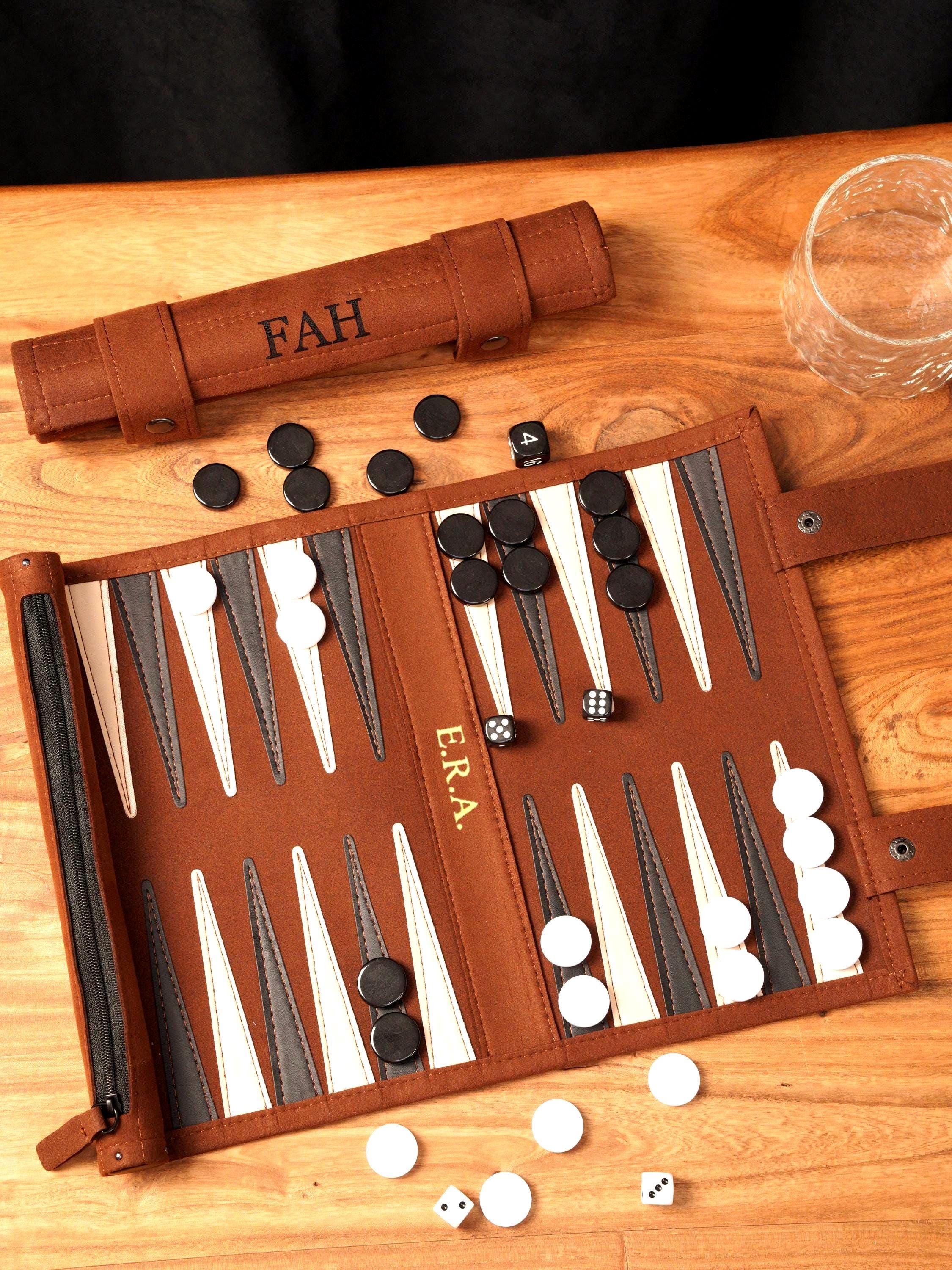 Travel Backgammon Set, Personalized Roll-Up Game Board, Compact Lea...