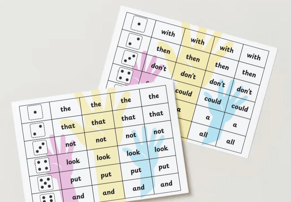 Roll and Read style board game designed to support the recognition of 12 of the First 100 High Frequ...
