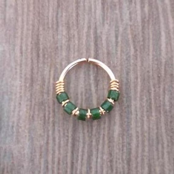 Dark Green Cartilage Hoop Earring: 14K Gold Filled Wire & Glass...