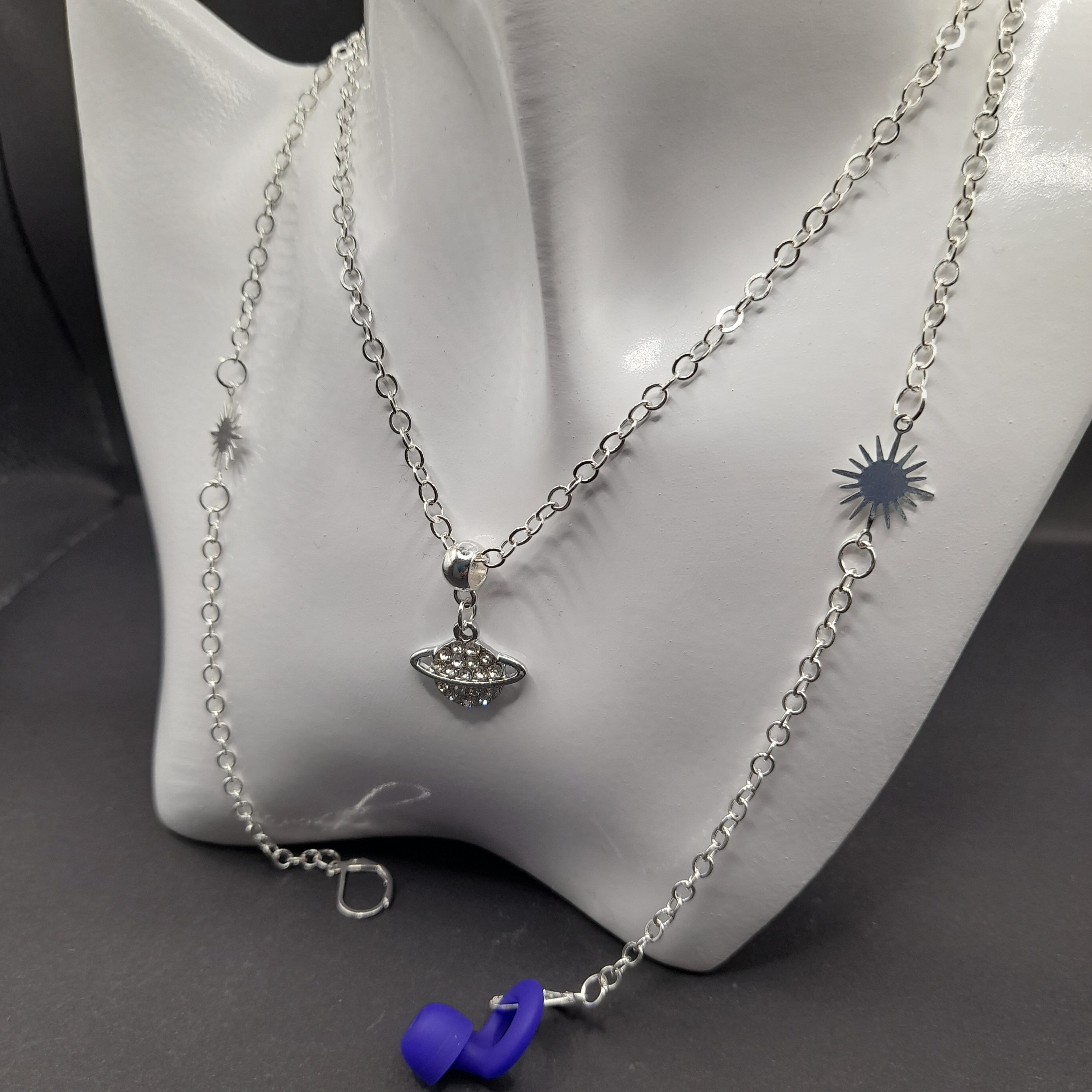 Silver planet loop earplug necklace - anti loss safety chain for ea...