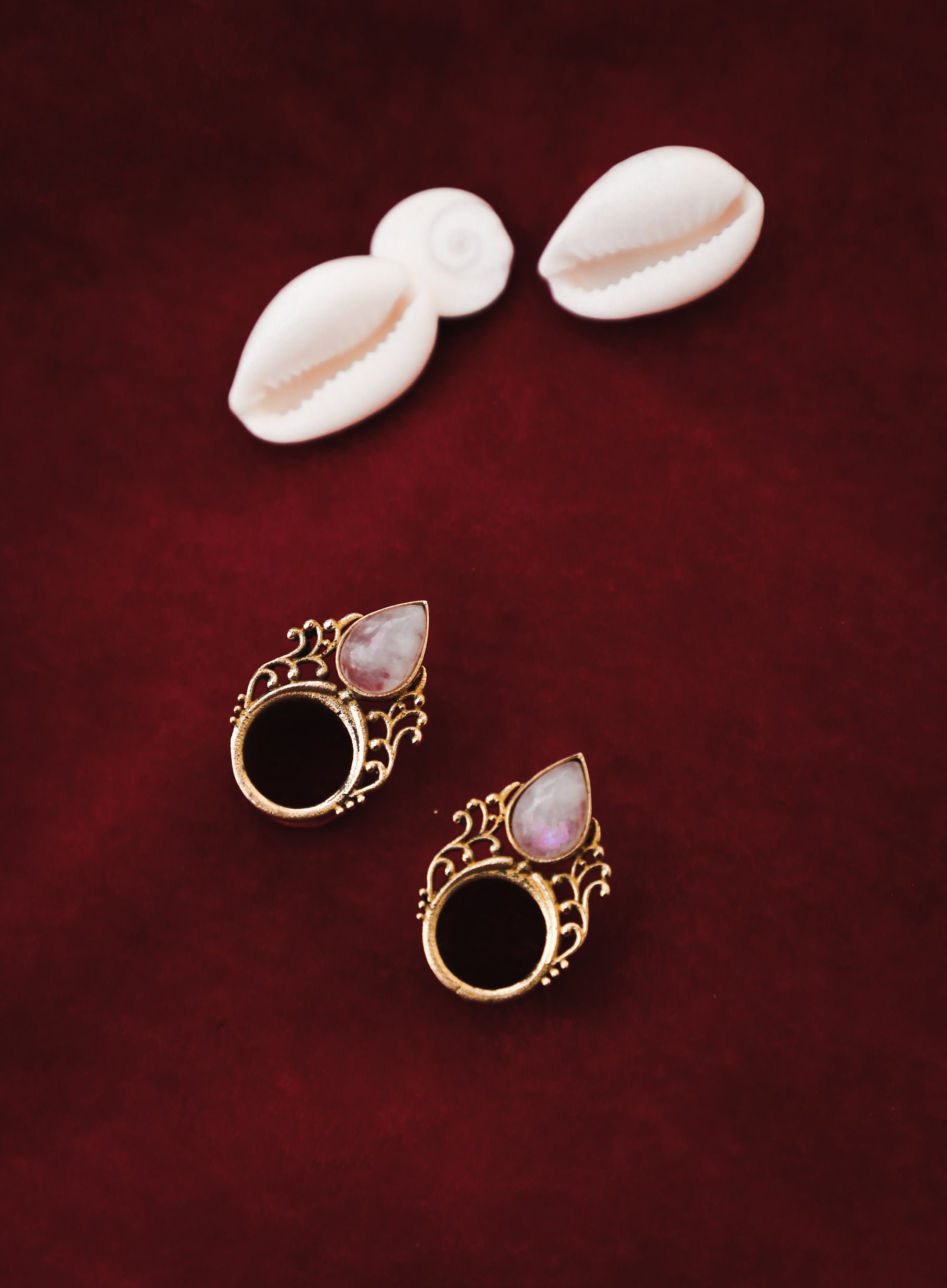 Ear Plugs | Moonstone Ear Plug | Brass Ear Plugs | Stretch Ear Plug...