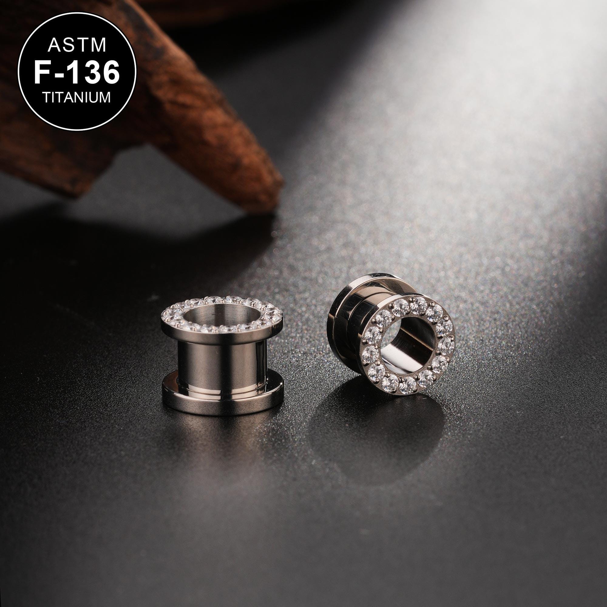 1Pair 6/8/10/12mm Titanium CZ Ear Plugs/Gauge Earring/Titanium CZ T...