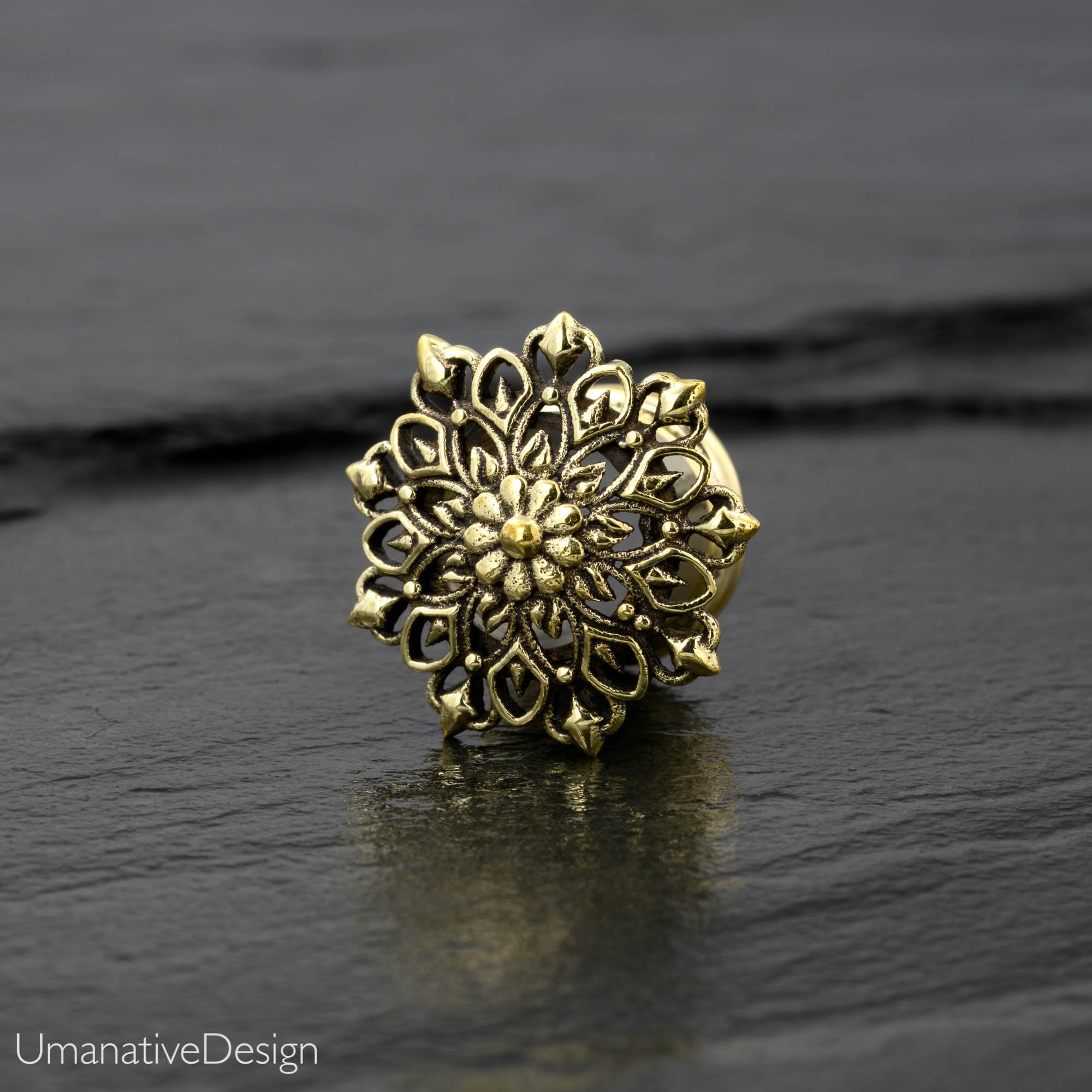 Unique, Hand Made Flower Mandala Ear Tunnels The design is available in 6g, 2g, 0g, 00g, 000g.( 4mm,...