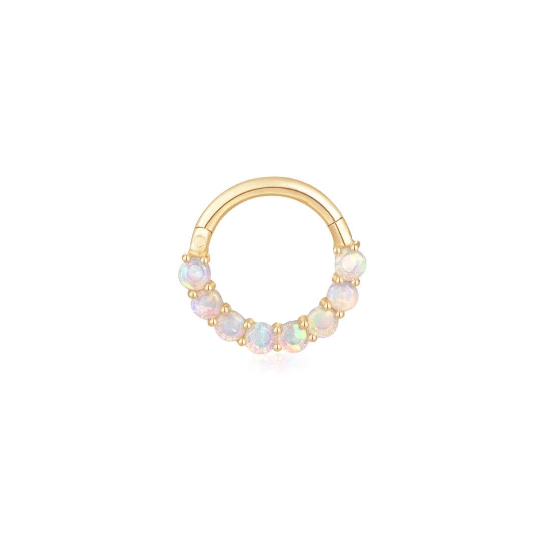 14k Solid Gold Opal Daith Hoop, Gold Daith Piercing, Opal Septum Ri...