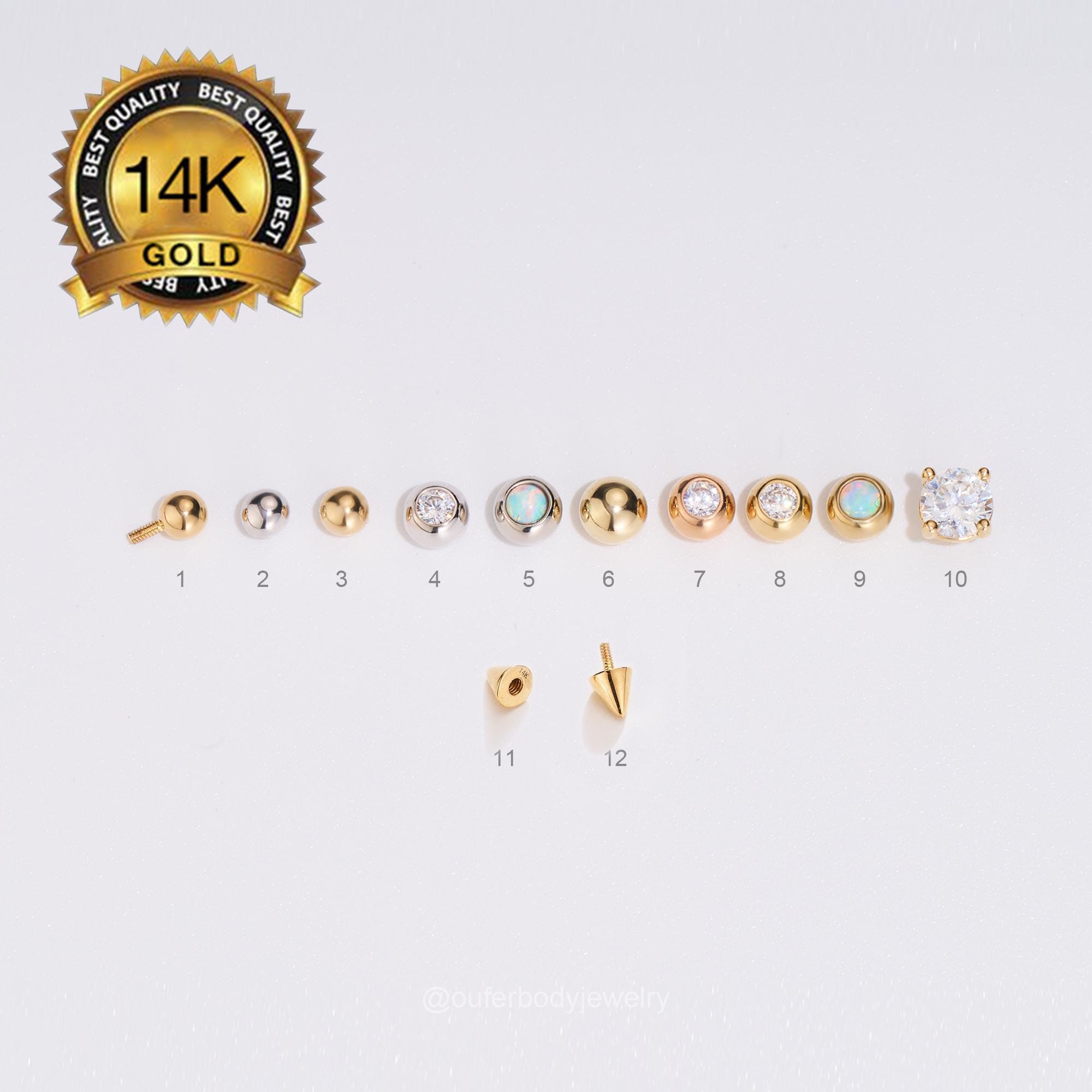 14K Replacement Gold Ball for Belly Ring/White Gold CZ Ball 14G Bel...