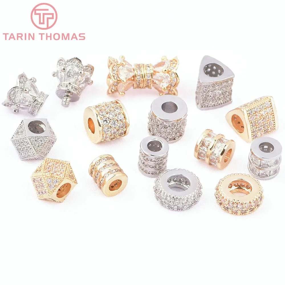 (8130) 4PCS 24K Gold Color Brass with Zircon Multiple Styles Septal Beads Necklaces Beads High Quali...