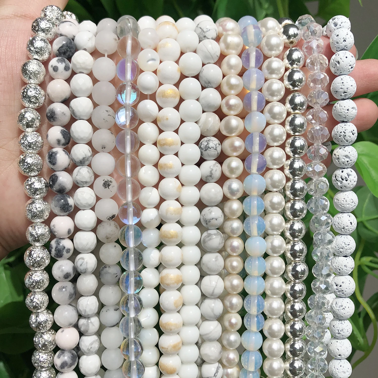 Natural White Stone Beads Howlite Crystal Pearl Jades Moon Round Lo...