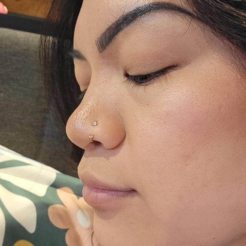 Only for an healed piercing. Internally threaded. The first picture:18g 8mm CZ 2mm, 65V gold . The S...