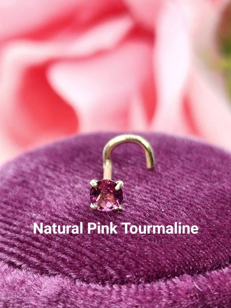 Genuine Real Pink Tourmaline Nose Stud , 14K Solid Gold in Twisted ...