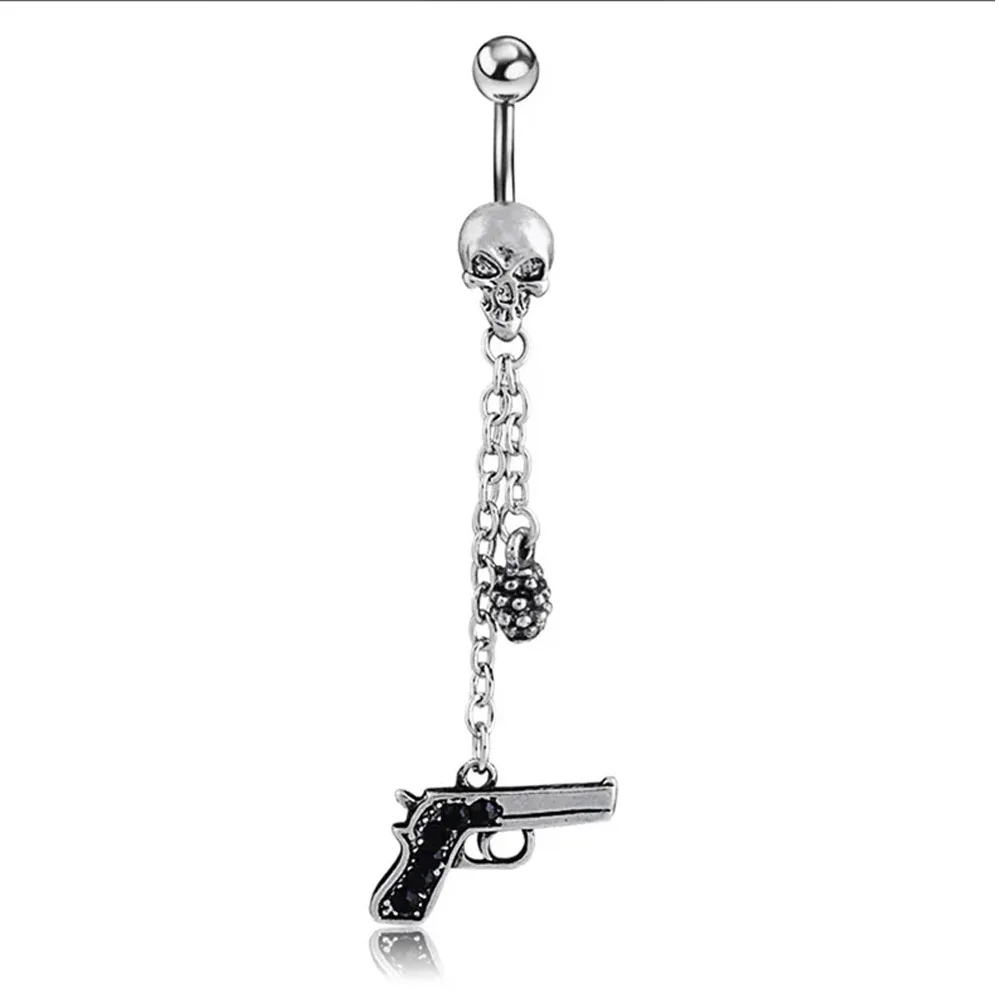 1pcs Vintage Skull Gun Dangled Belly Button Rings Stainless Tassel ...
