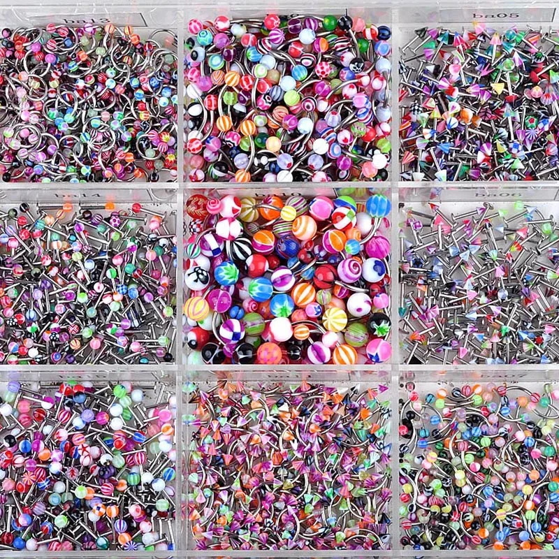 90pcs/Lots Mixed Acrylic Assorted Ball Tongue Nipple Bar Ring Barbell Piercing Tongue Stainless Stee...