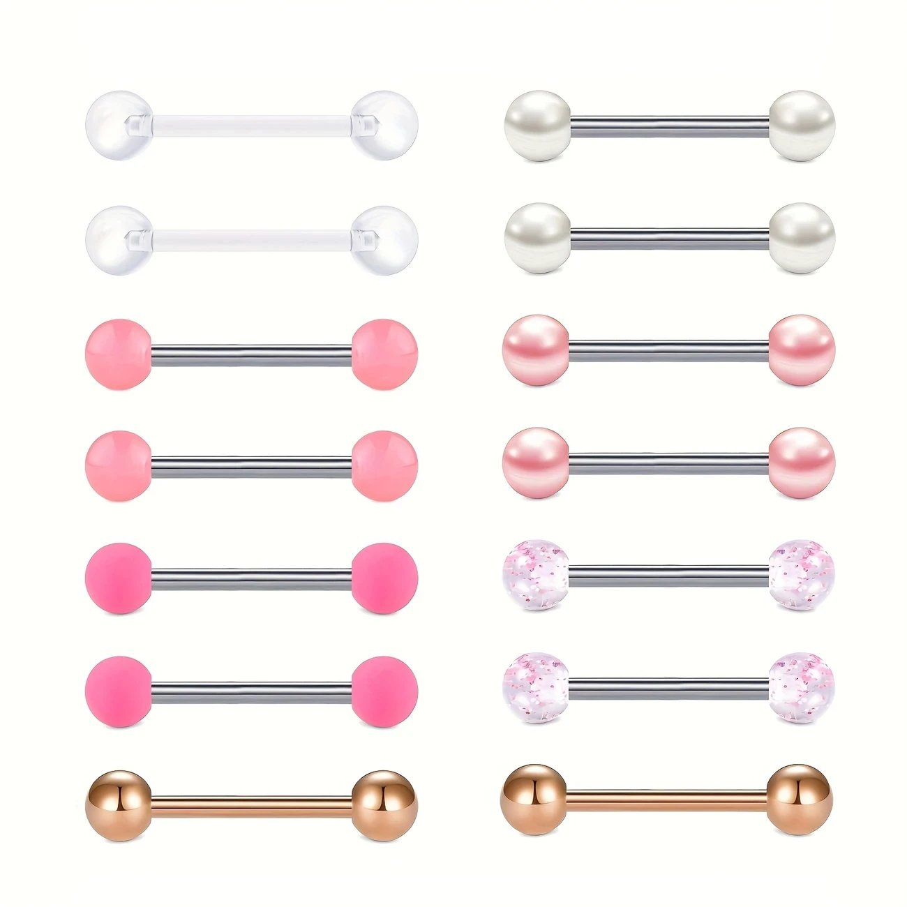 14pcs Pink & Blue Stainless Steel 14G Tongue Rings Set Tongue B...