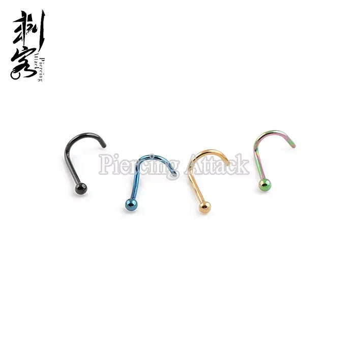 Stainless Steel 20 Gauge PVD Plated Nose Ring with Ball Screw Ring ...