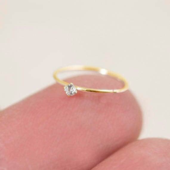 Gold Nose Hoop, Gold Nose Ring, Tiny Nose Hoop, Tiny Nose Ring, CZ ...