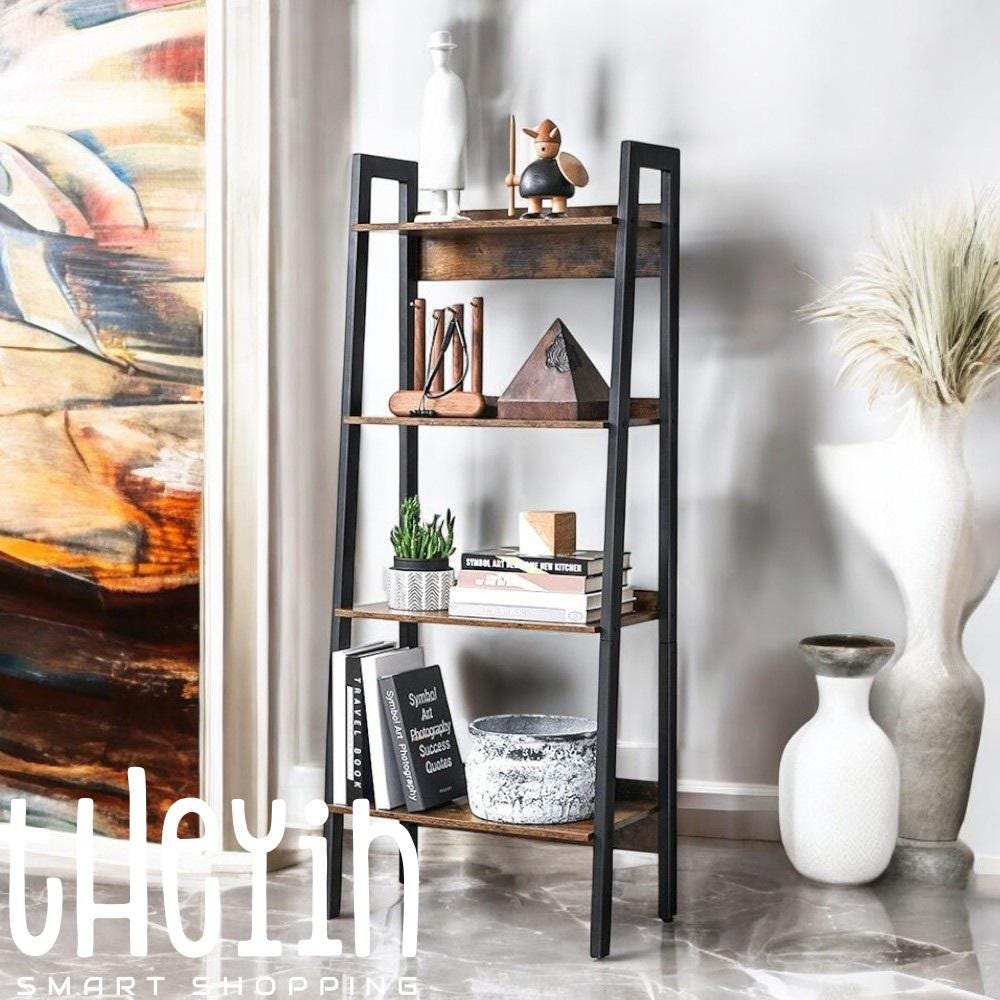 4-Tier Shelf, Rustic Ladder Shelf, Room 4-Tier Shelf Stand, Industr...