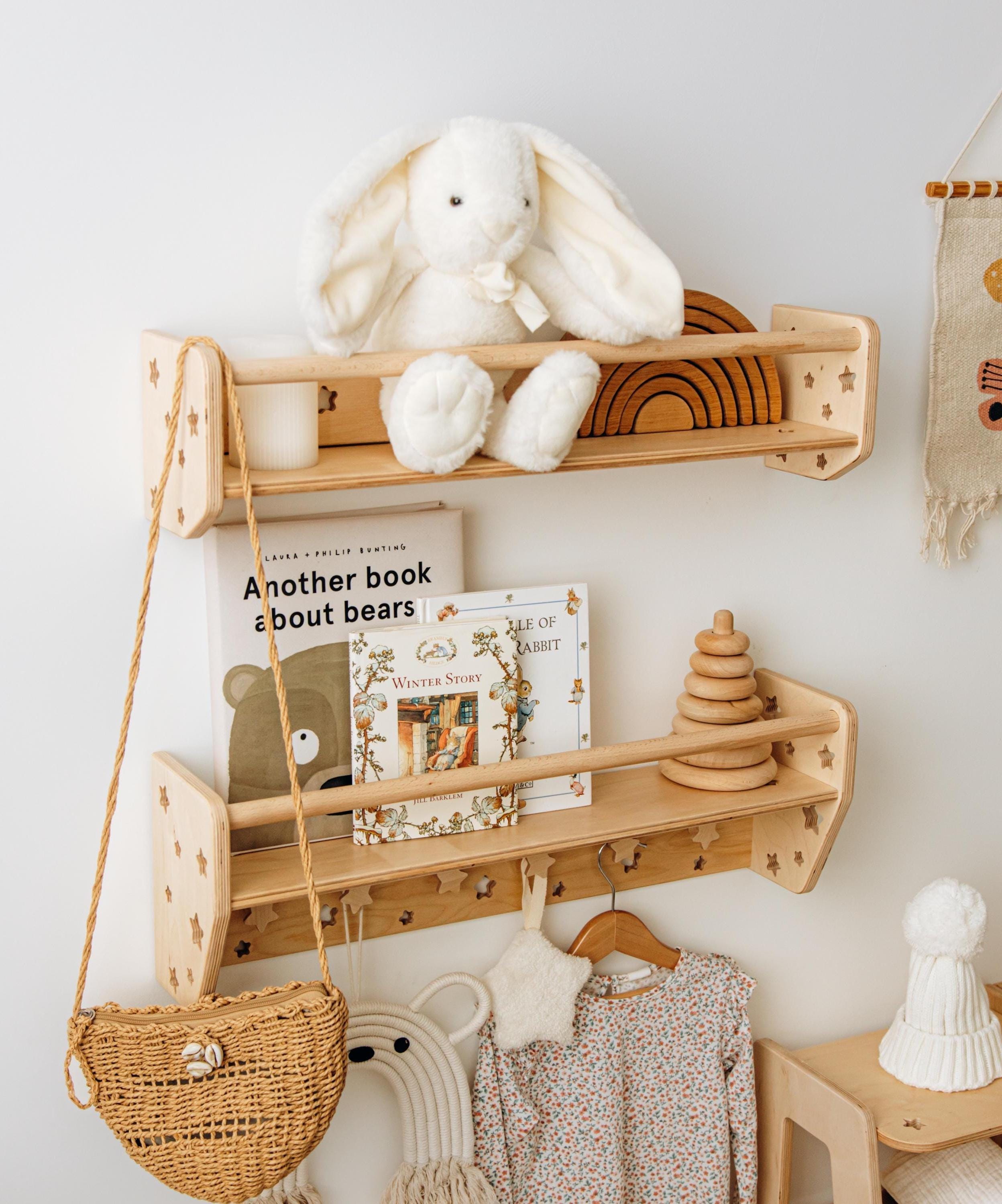Wooden Star Wall Shelf - A Magical Addition to Your Child's Room This handcrafted wooden wall shelf ...
