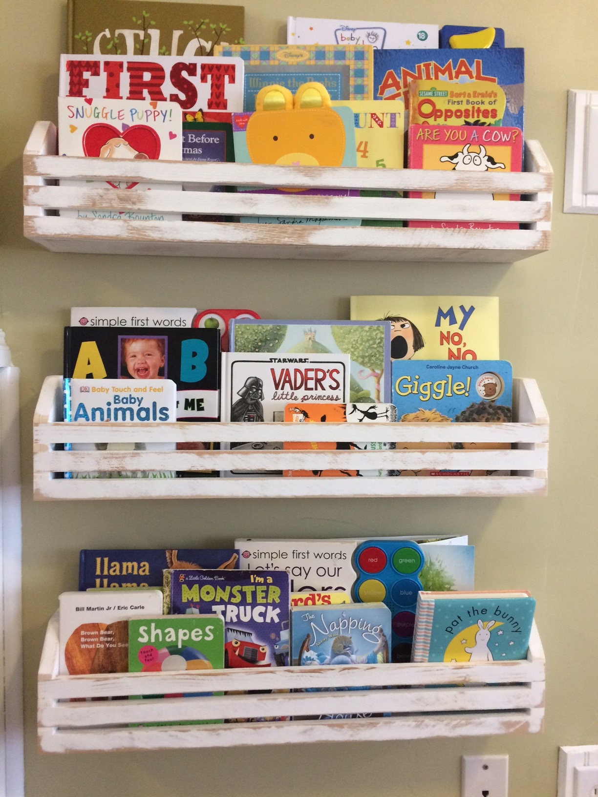 Rustic Childrens Book Shelves--Set of 3, Kids book shelves, Hanging...