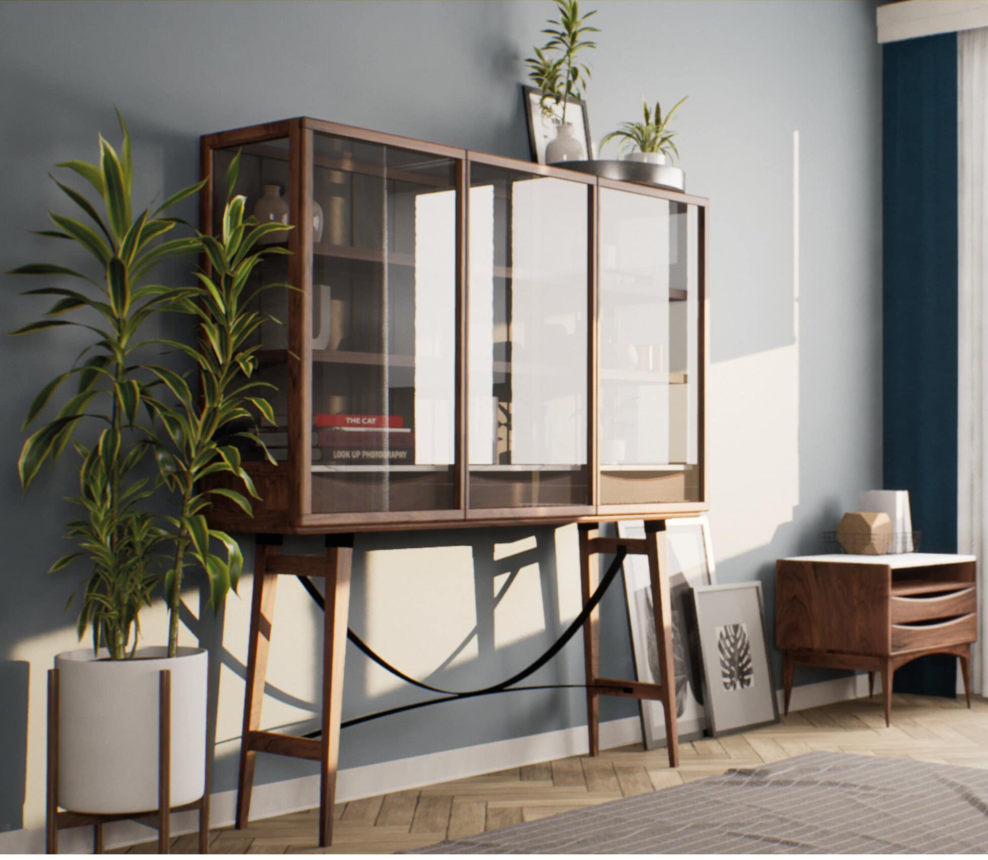 Glass display cabinet fabricated either in solid walnut, oak, teak or chestnut by our team of skillf...