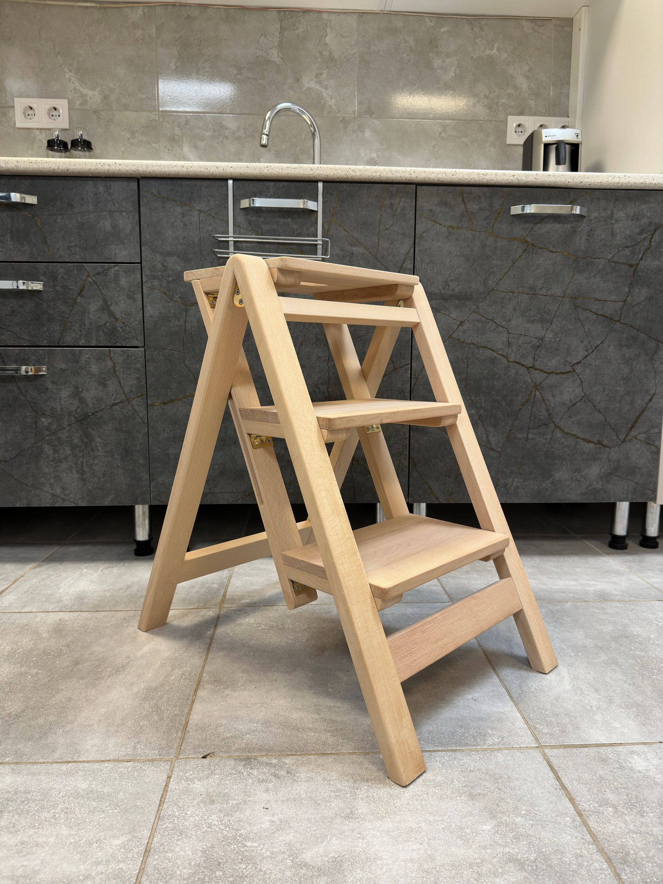 Step stool, Kitchen stool, Library ladder, Handmade stool, Foldable...