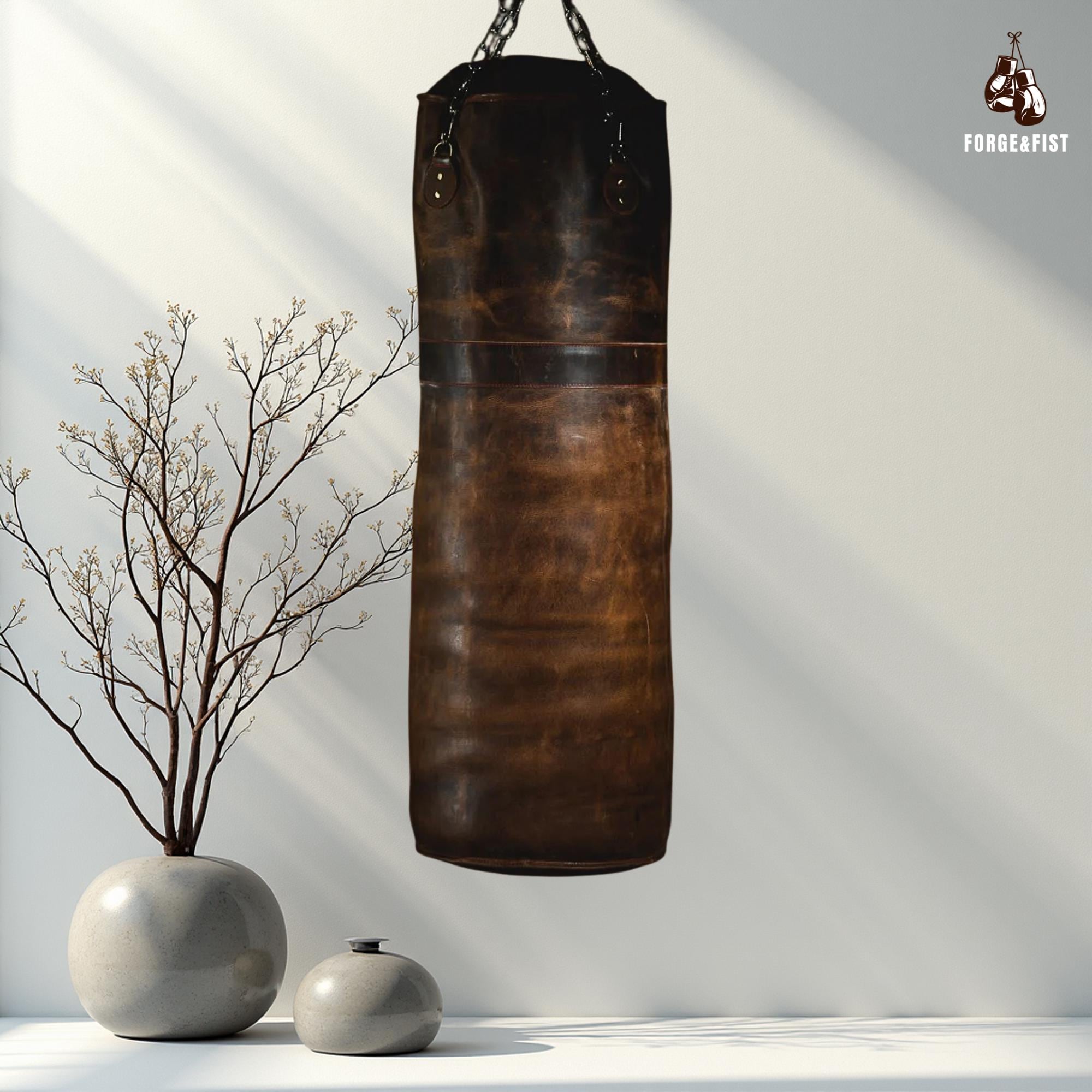 Handmade Vintage Leather 70kg Heavy Bag with free Hanging Chain - 4.5 feet Boxing Bag, Heavy Punchin...
