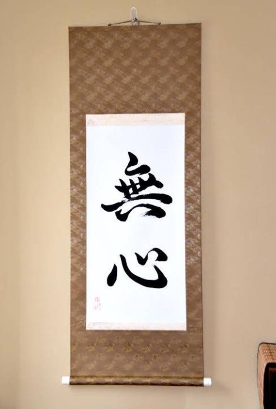"Japanese Shodo calligraphy art on Japanese washi paper framed on a beautiful fabric Kakejiku s...