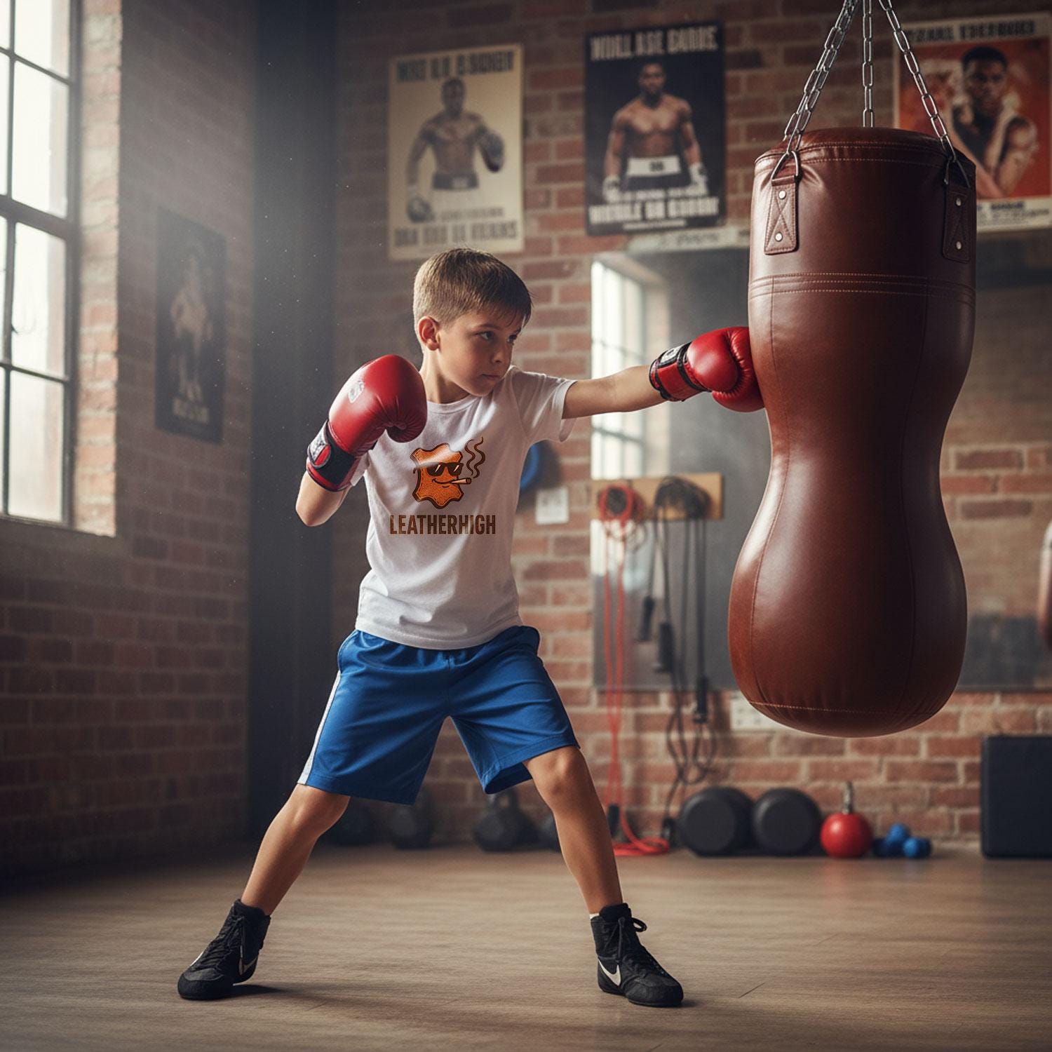 Handmade Vintage Leather Kids Boxing Bag with Hanging Chain - 3ft P...