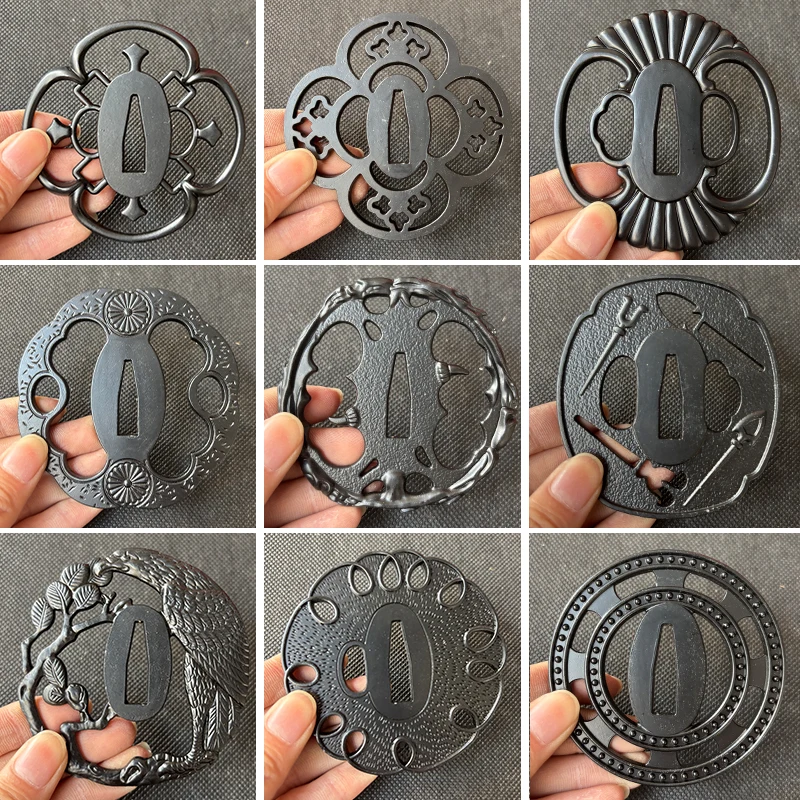 Quality Alloy Black Tsuba,Metal Guard For Japanese Katana,Wakizashi Samurai Sword Swords Fitting
